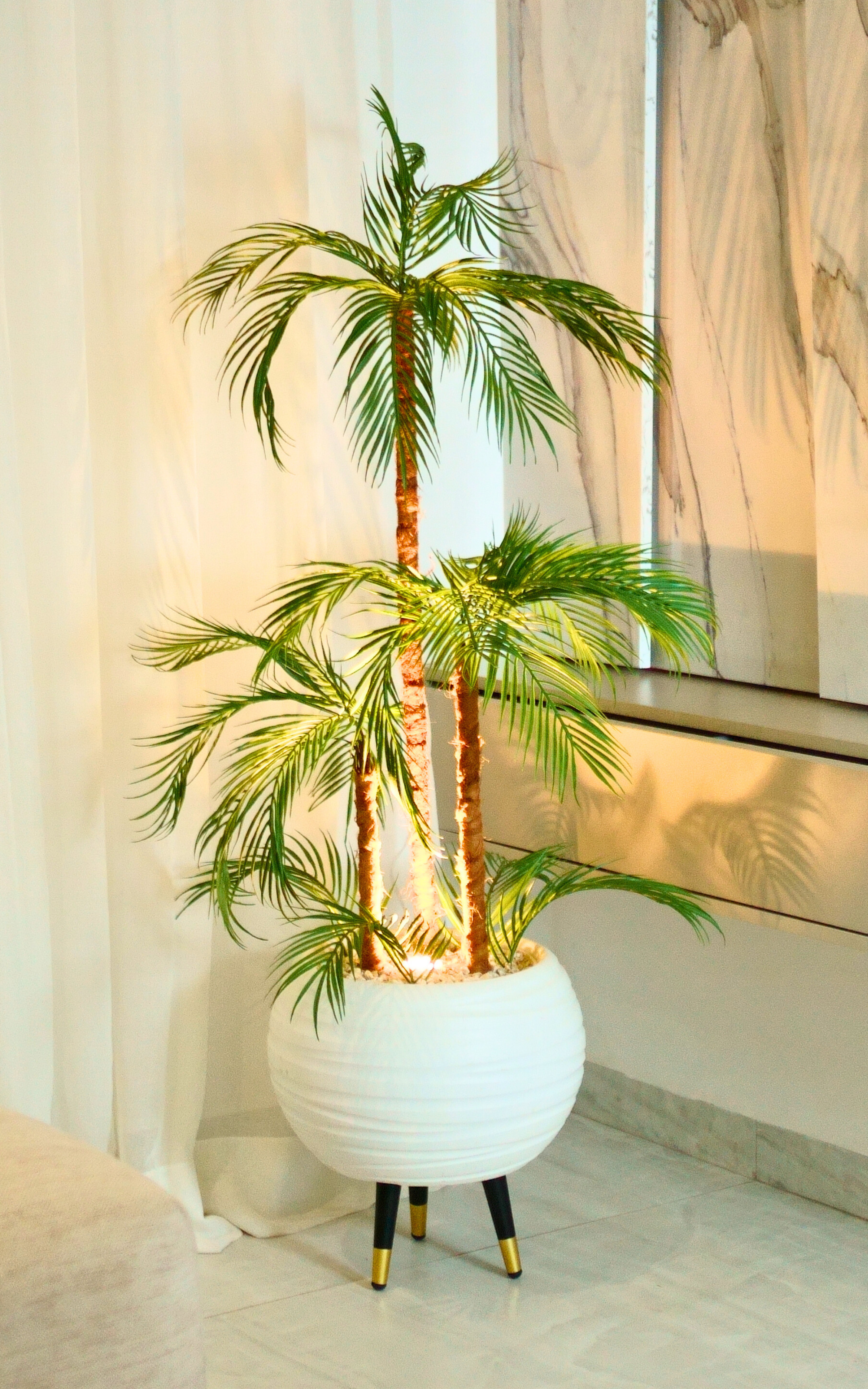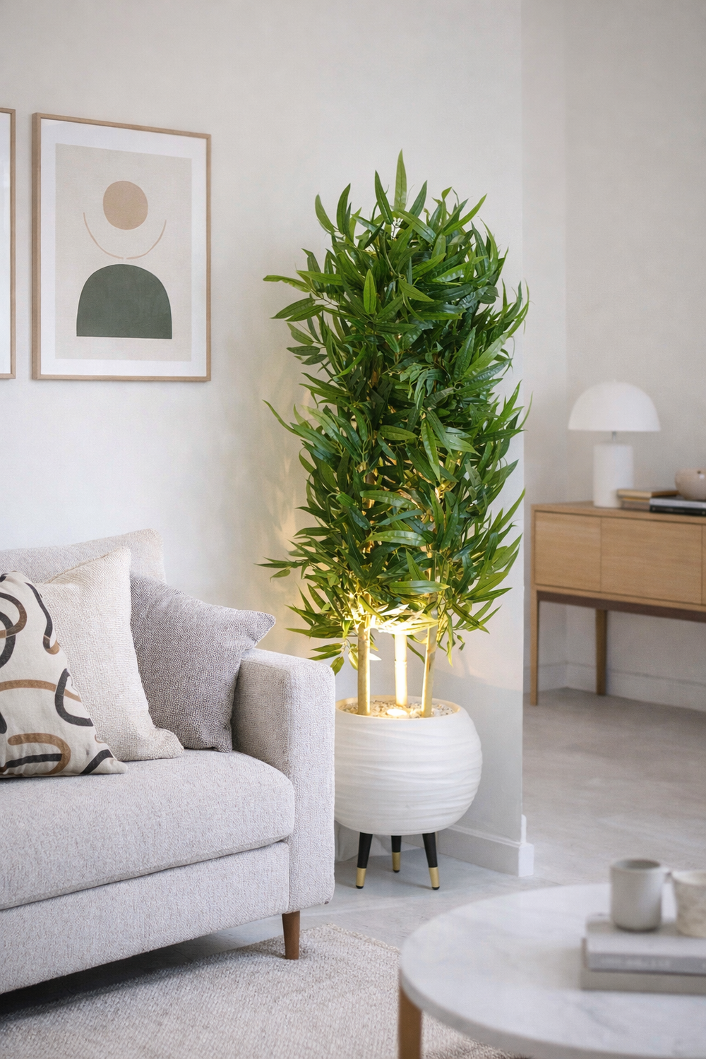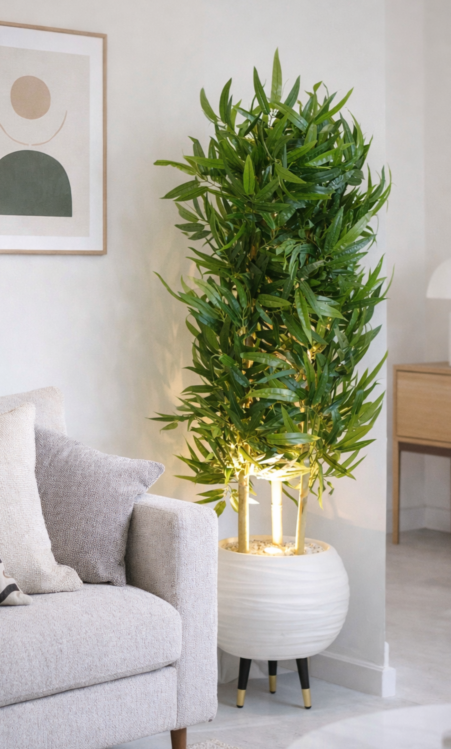 Oui. Chaque plante est équipée d’un spot LED intégré, qui diffuse une lumière douce pour créer une ambiance zen et élégante.