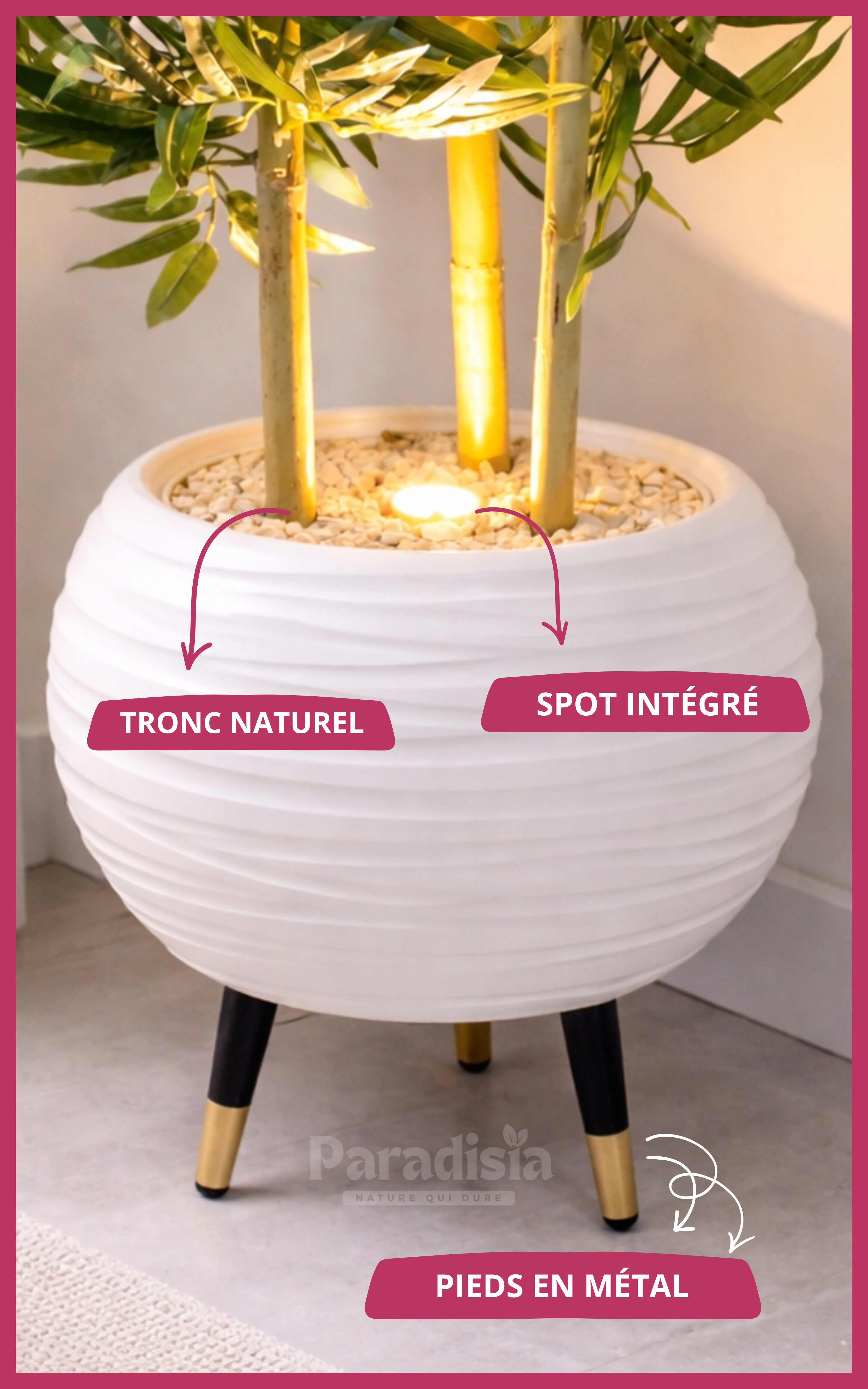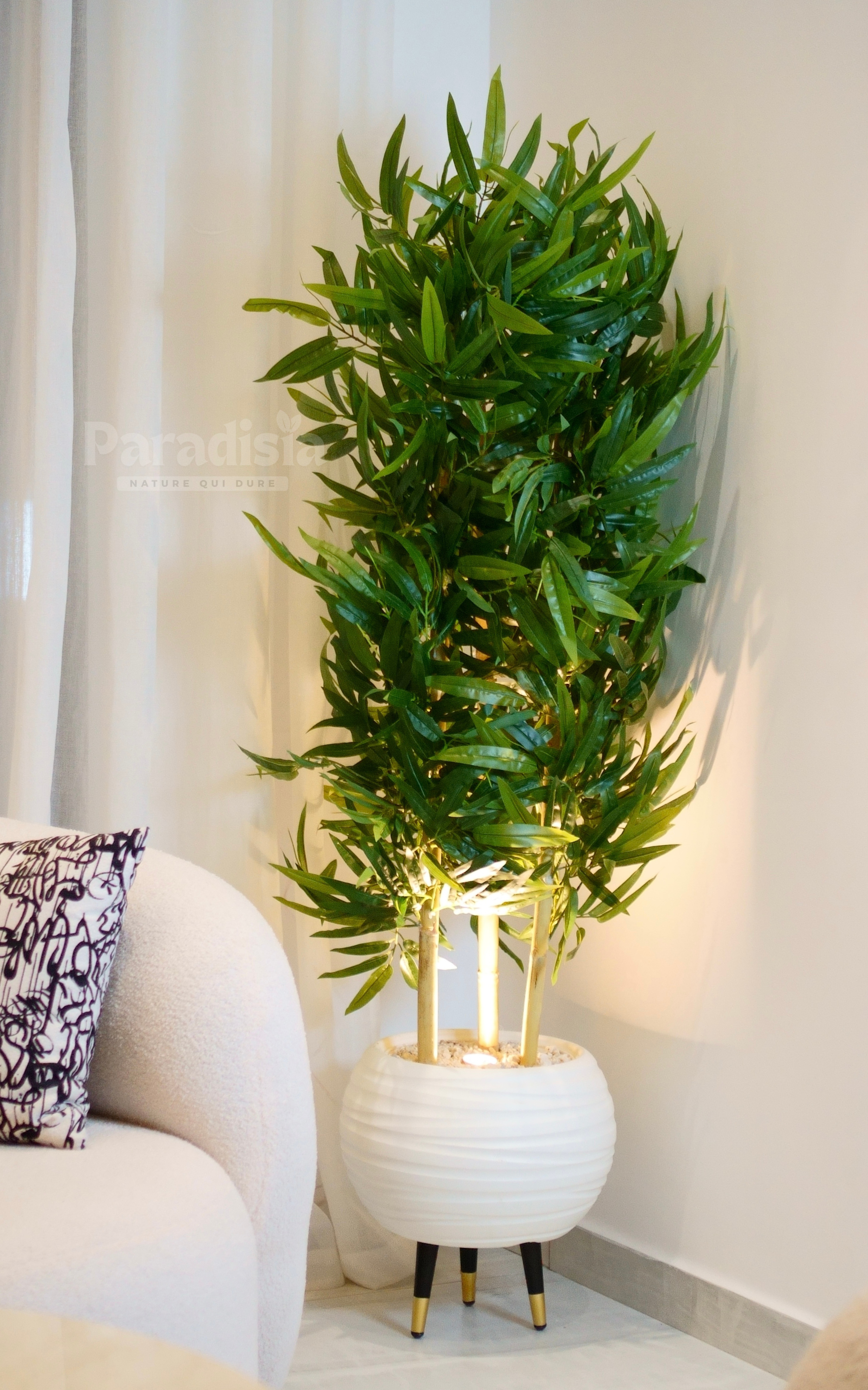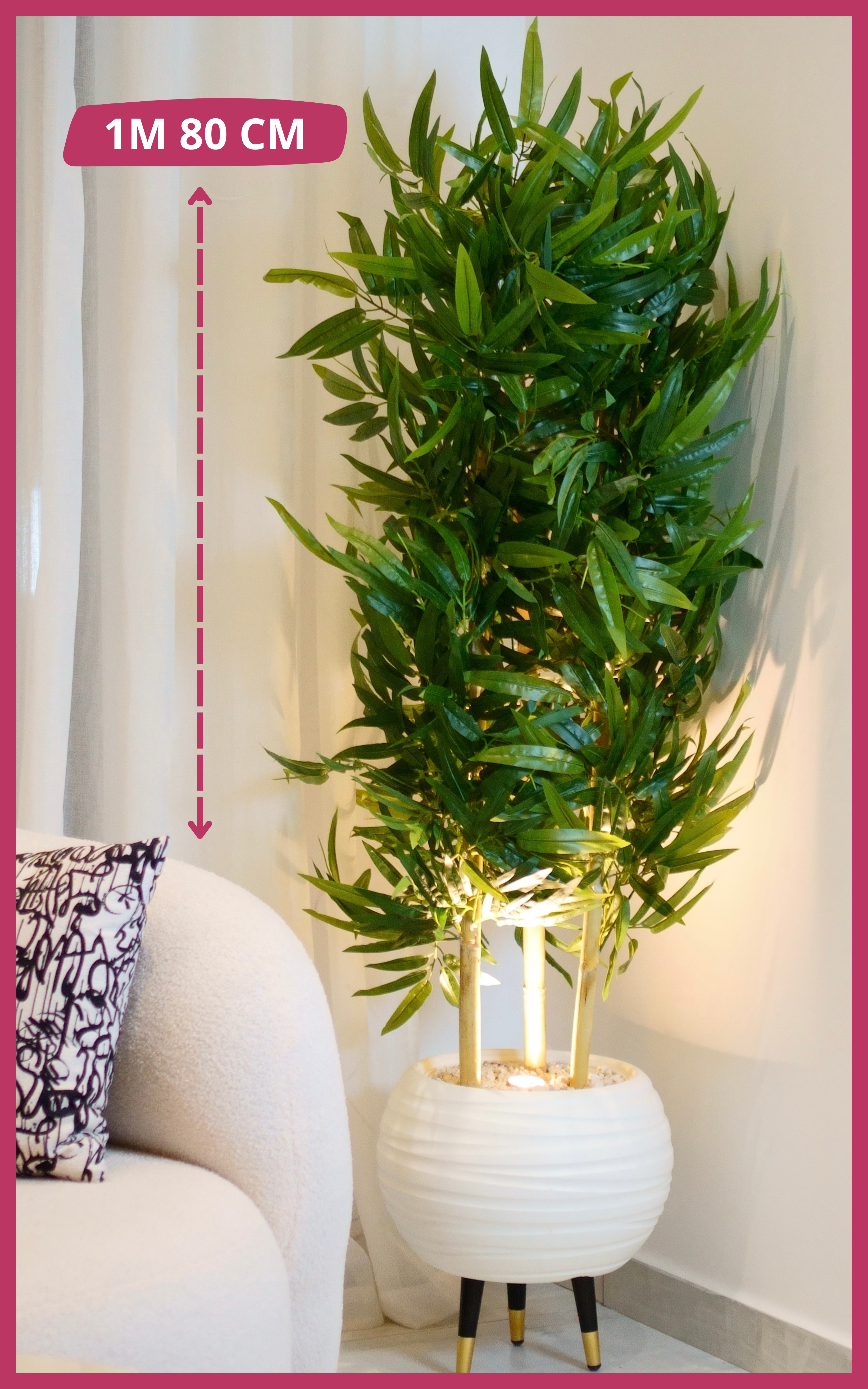 Oui, la plante est équipée de 1 spot intégré qui apporte une lumière douce et met en valeur le bambou.