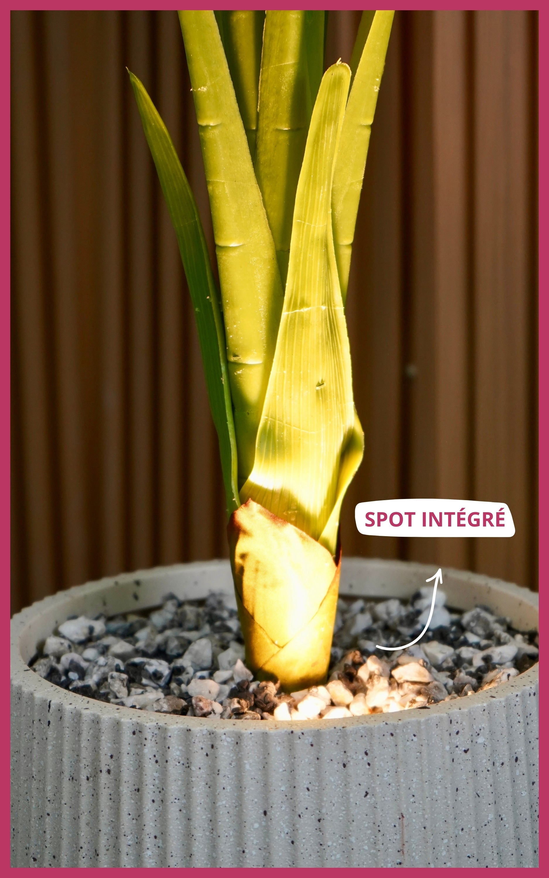 Oui, la plante est équipée de 1 spot intégré qui apporte une lumière douce et met en valeur la Strelitzia .